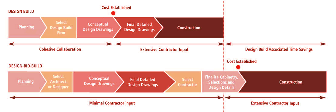Design & Build project delivery is a single point entity responsible for design & construction both enabling the client with a fixed construction cost early in the project. As constructors costing is based on rate analysis & facts rather than assumptions. The cost of the 'unknowns' or 'extras' is minimal; almost 70% of traditional contracts end up over budget, compared to design & build which is only around 25-30% over budget. The overage of a design & build project is generally owner driven, whereas the overage in the more traditional method tends to be a result of the budget disconnect to which many architects and other design professionals are prone.
